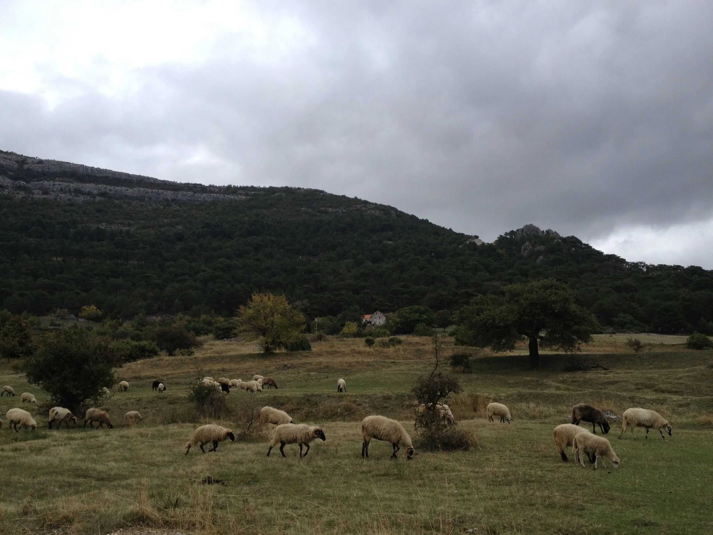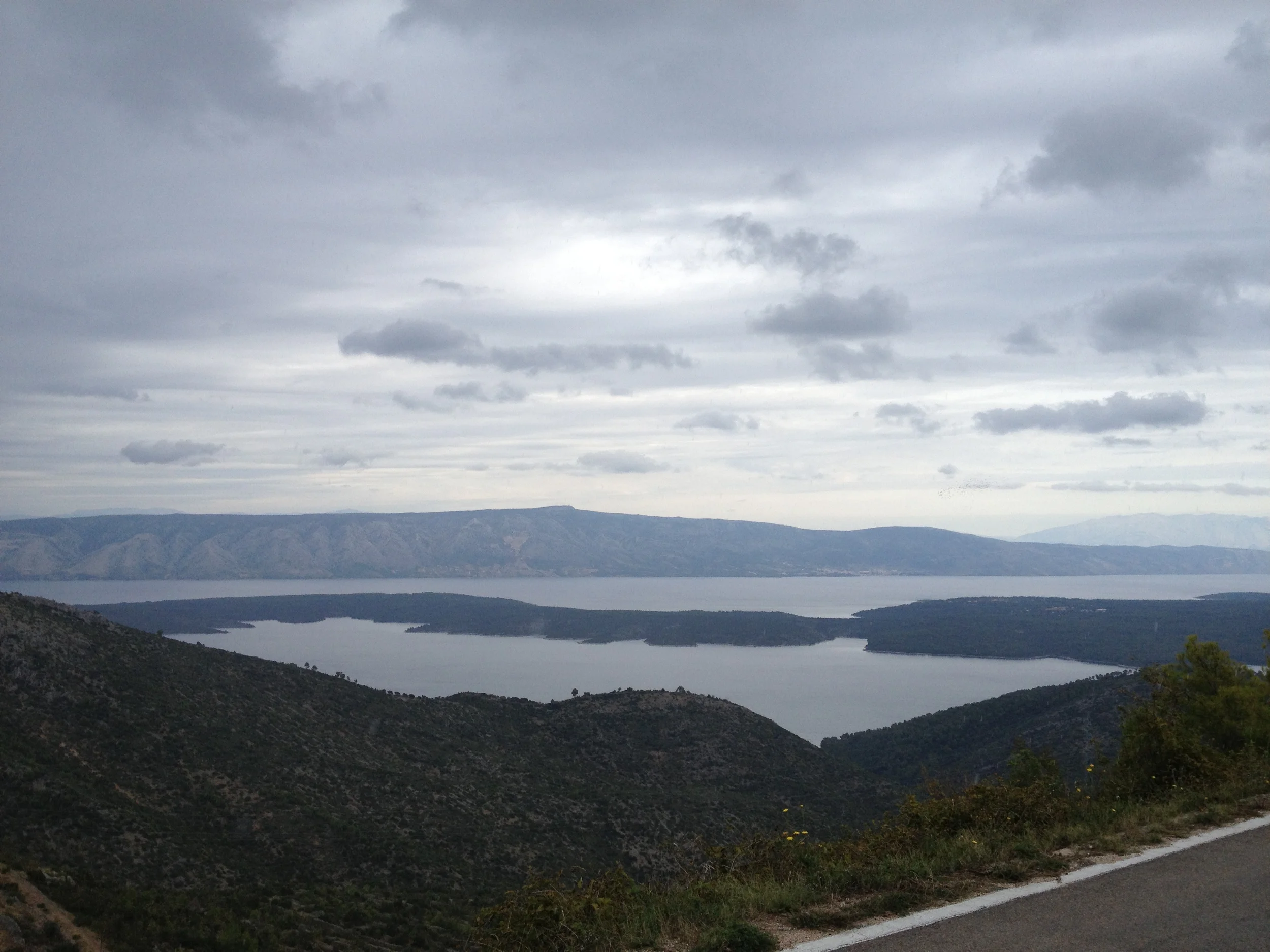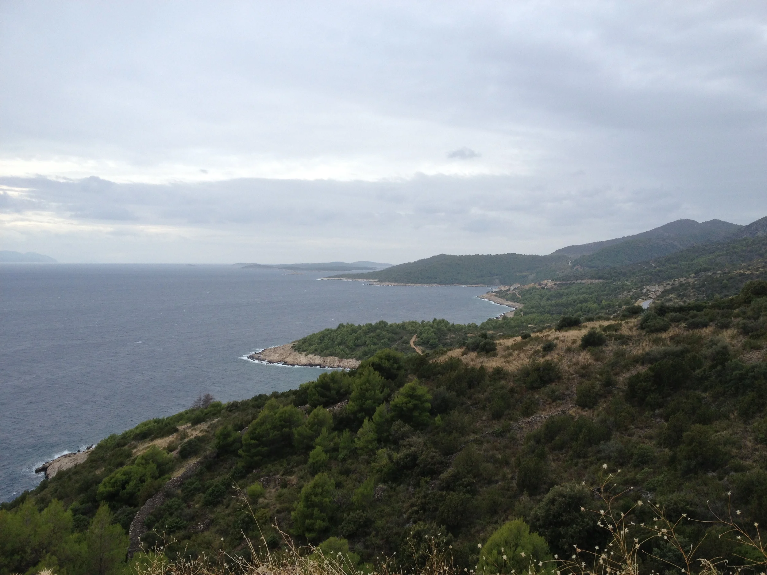 the next day it was too cold and drizzly to go boating, so we rented a scooter instead and decided to explore the island’s less-frequented parts. i'd never ridden one before, so trying it out on a rainy day over mountainous terrain was quite a memorable first experience. we took the old road from hvar to stari grad and enjoyed the incredible sea views as we climbed steadily to some of the highest points on the island. we passed through the old stone village of brusje and marveled at the many criss-crossing stone terraces that dotted the lavender fields on the way to stari grad. after heading up for awhile we eventually had to get down, and that ended up being an exhilarating and slightly terrifying ride. there were a few unprotected drops as we slowly made our way down the steep, sloping sides of the island, and the cold rain whipping our faces didn't help. when we finally reached stari grad, we warmed up with some tea and a nice, cozy lunch. our day of exploring ended with a delicious seafood dinner at a restaurant our friend recommended to us. ever the gracious host, alessandro saw us walking down the street and offered to drive us there. turns out he was friends with the chef, and soon we were taking silly photos and taking shots of a mystery liquor!