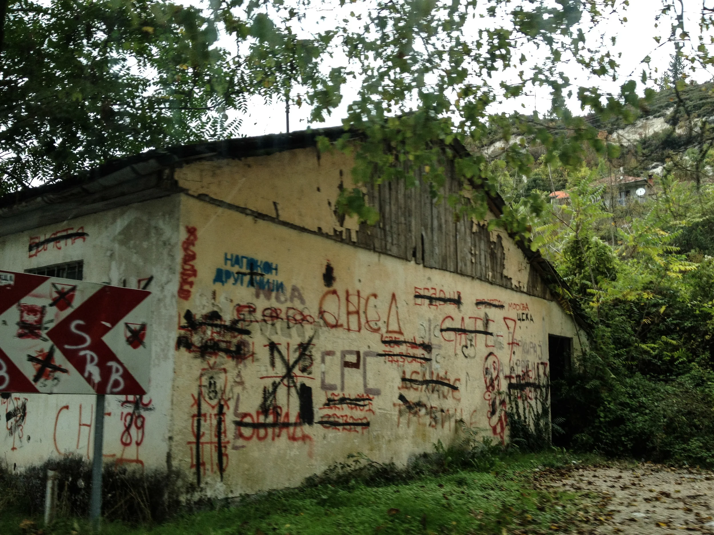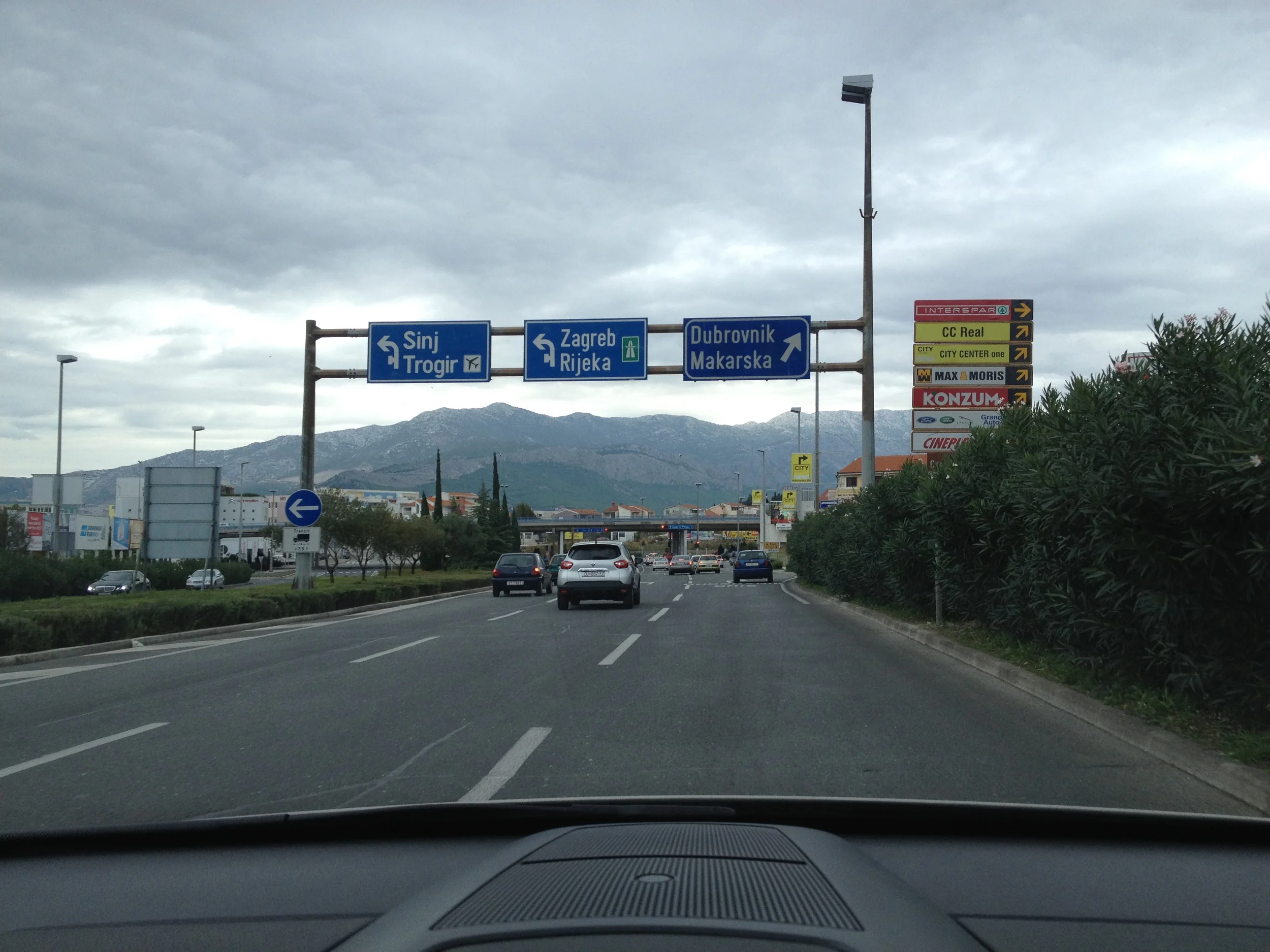 we eventually reached the bosnian border, where we were held up for a good twenty minutes. the car in front of us was searched very thoroughly by the police as the two passengers stood around waiting. we tried to make out why, but the license plate didn’t tell us where the men were from. we decided they must either be serbian or have some sort of record, or both. the animosity between the various countries still seemed very palpable. in that moment, we felt lucky to be carrying US passports. once that ordeal was over with, we drove to trebinje and stopped for lunch. the town itself was very quiet and seemed a bit dismal, but the restaurant we ate at was busy, and our waiter was friendly and eager to practice his english on us. after our meal, it was back on the road and time to speed towards split. throughout our drive to the croatian border there were several bombed or burned-out buildings and shells of homes and offices that once stood there – a sad reminder of the brutal war in the early nineties.