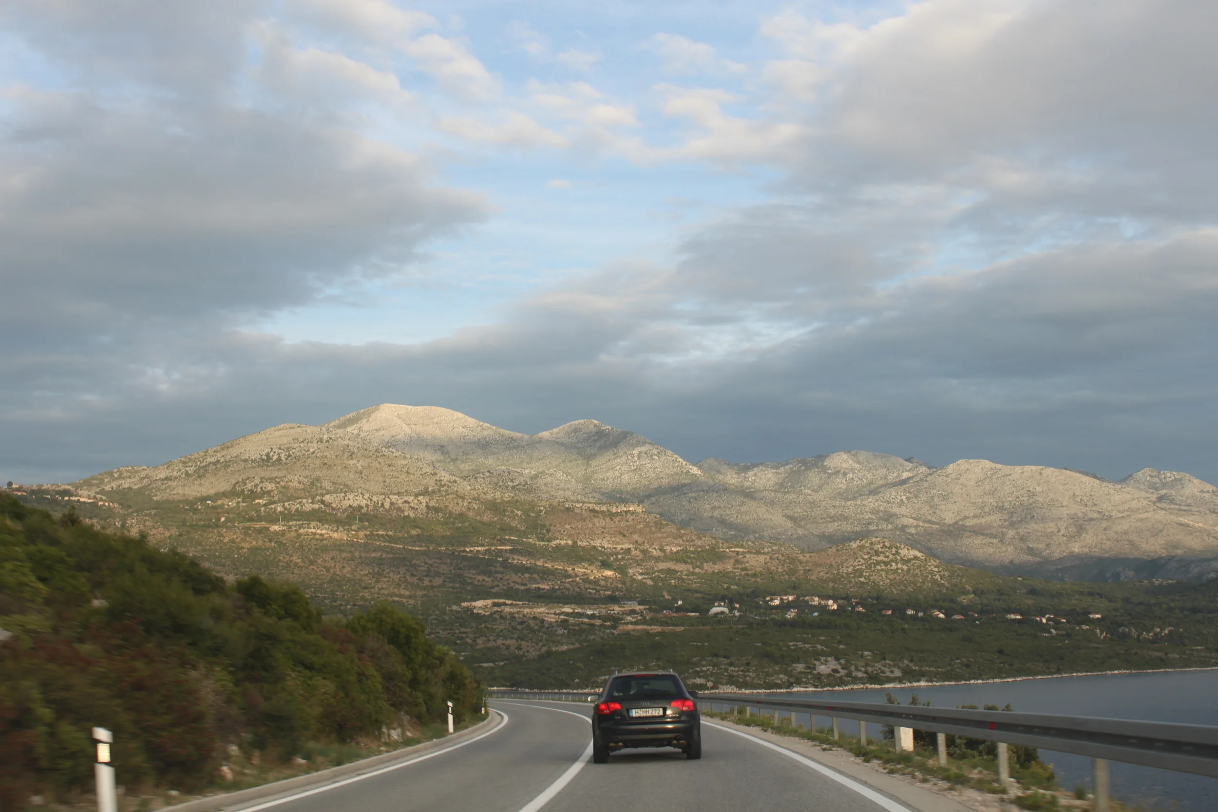 by the time 6:30pm rolled around, we had just crossed back into croatia. it was dark, we were still in the mountains, and the major highway we were relying on was nowhere to be found yet. with our car due back at 8pm, we were getting a bit nervous. thankfully the roads weren't too bad and there weren't any cops, because as soon as we found the freeway, alex gunned it for a good chunk of the way back. our little minivan was doing 90mph on the newly opened highway, darting past what few lost souls were also on the road. miraculously, we made it back to split with just enough time to drop off the car and board our ferry. we were italy-bound!
