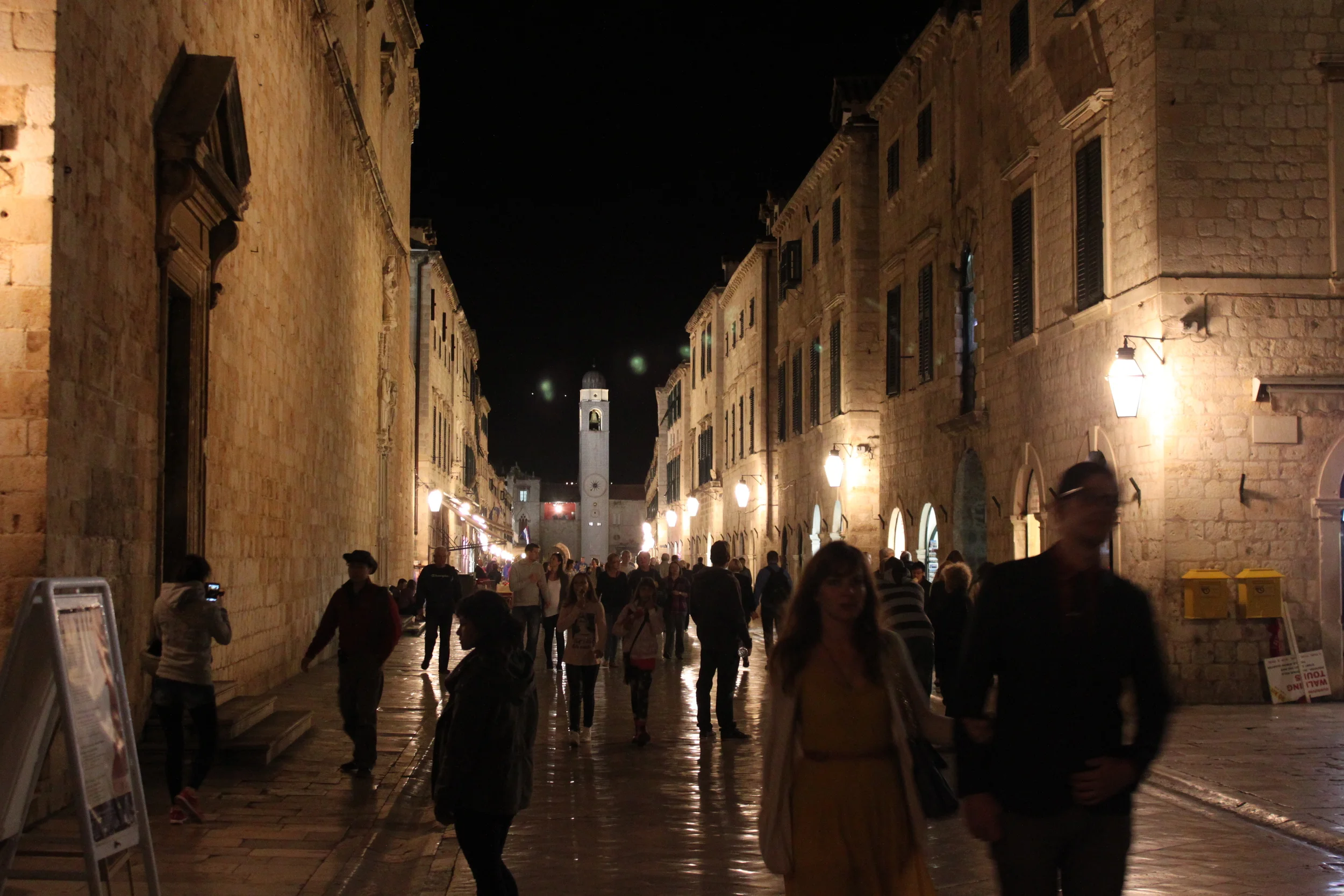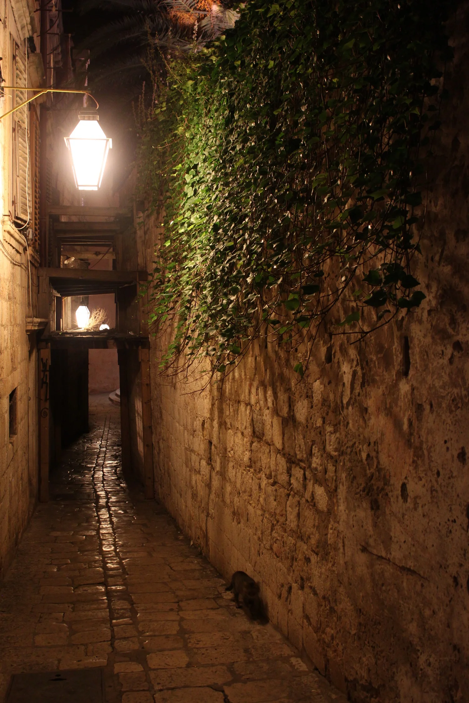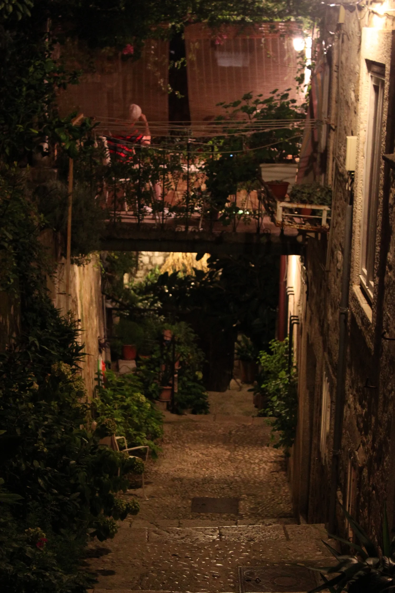 from split we took the ferry to the island of hvar. it was a friday afternoon, and the sun was shining brightly as we pulled into the harbor. our airbnb host alessandro picked us up and drove us up the hill to our apartment. usually it goes for around $200 a night during the summer, but we got it for a steal at $35 because it was low season. as soon as we walked through the door, we immediately decided to book a second night. the place was huuuge! the main balony spanned both the living room and bedroom and offered a fantastic view of the bay. the shower even had those awesome jets that massage your whole body! we were really looking forward to hanging out in hvar for the weekend. that evening we took one of the many narrow, winding staircases up the hill and made it to the castle just in time to watch the sunset. then we wandered around town, hoping to find a fun bar to check out. normally the town is packed with ridiculously attractive people dancing and drinking the night away at one of the myriad clubs and bars along the harbor, but hvar's split personality was showing its quiet side this friday night.