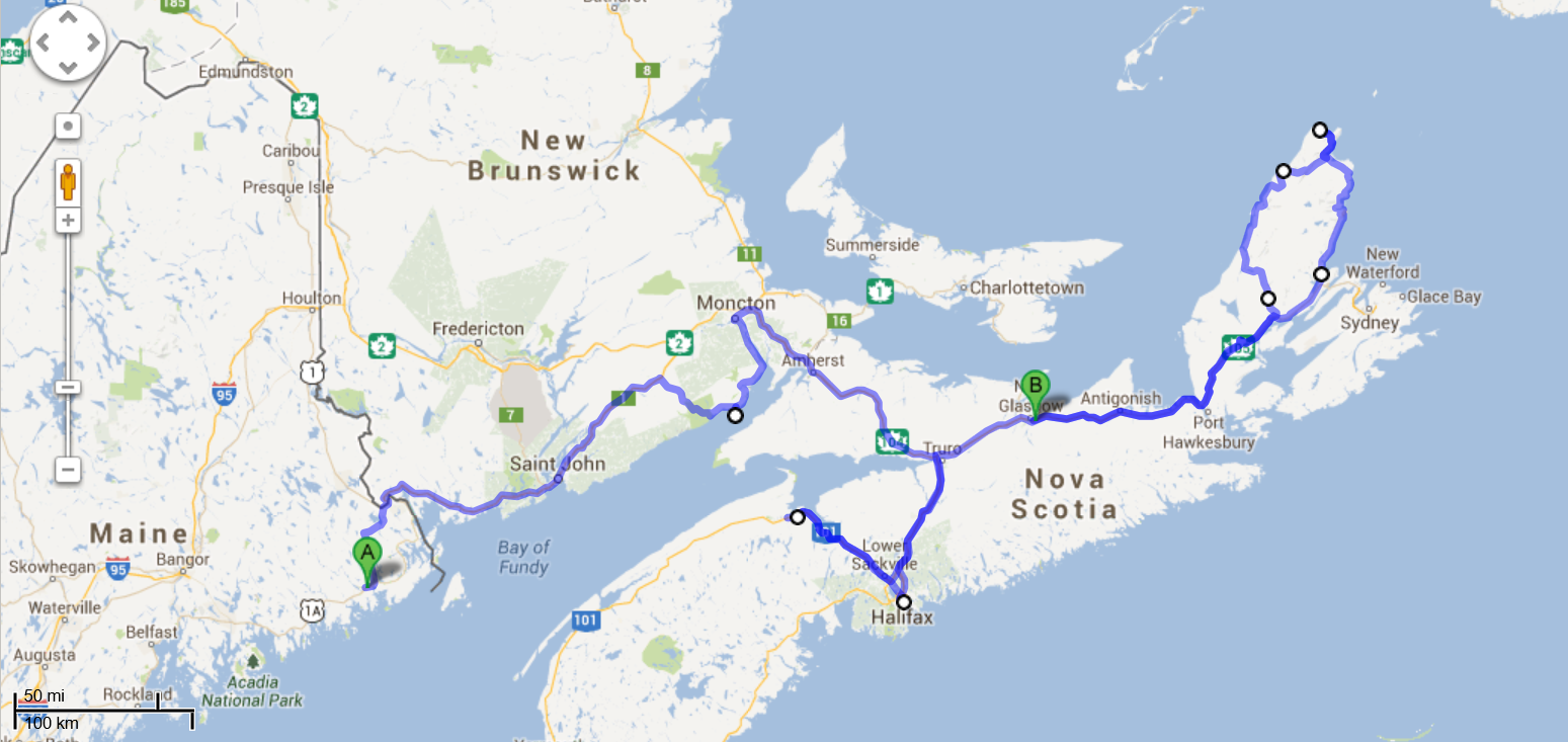 we took the scenic route down the eastern coast of the island, then crossed back into new brunswick and stopped in new glasgow for the night. the next day, we were headed for quebec. time to bust out my broken french!