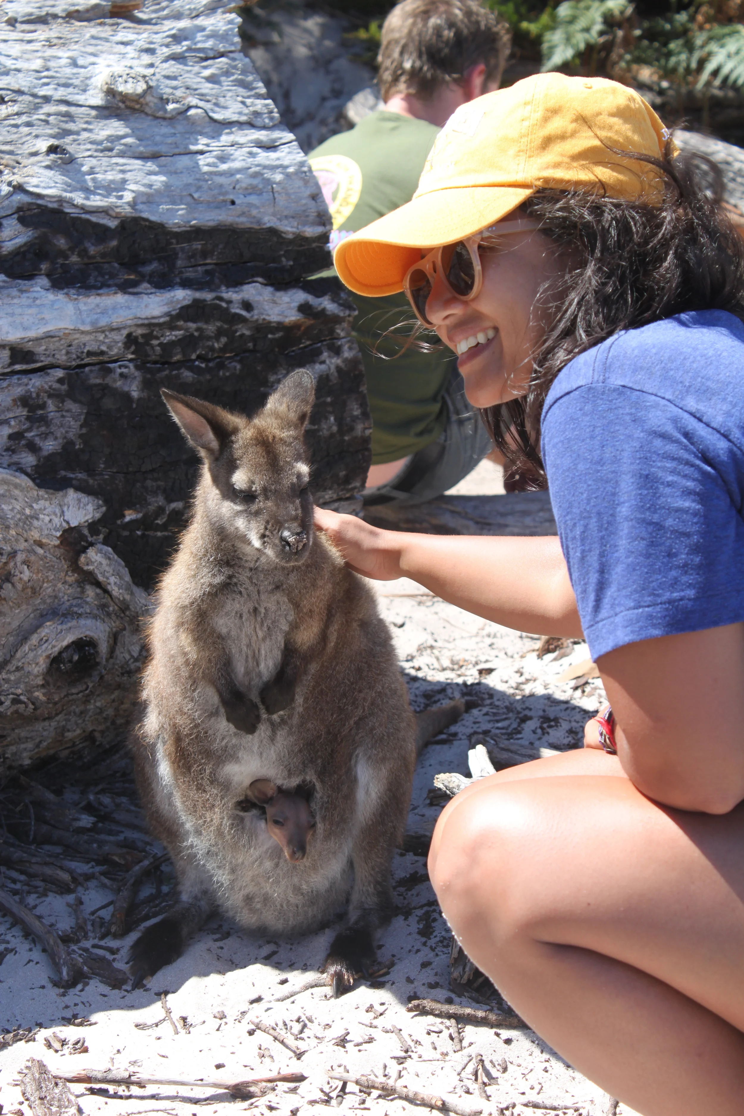 tuesday’s gorgeous weather made for a memorable 6km round-trip hike to wineglass bay. it was a relatively easy walk to the lookout point, followed by a steep and rocky descent to the beach. as soon as we came out of the trees we stumbled upon a perfect arc of white sand and rolling turquoise waves framed by wooded granite peaks. low-lying clouds settled in to complete the picture-perfect view. the beach was breathtakingly beautiful, and yet somehow we’d never heard of it before. it makes you wonder just how many more amazing places there are in the world that you don’t even know exist. on our way back we ran into a wallaby and her adorable little joey – we couldn’t believe how close we were able to get! the afternoon ended with a drive up to the lighthouse at cape tourville for sweeping views of the beautiful coastline, the tasman sea stretching out in front of us all the way to new zealand. later we enjoyed another fantastic sunset on the beach, this time equipped with a bottle of tasmanian pinot noir and the tunes of bob dylan.